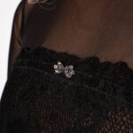 This bodysuit is made of net fabric with gipured front with small ruches on the chest. It gives your spine a nice shape.