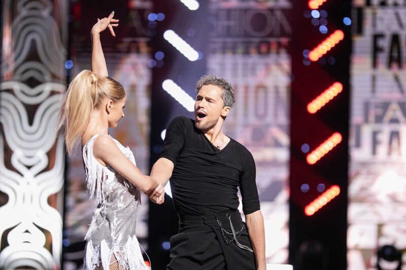 This item is available in the size XS-S. The dress is in a perfect condition. It was designed for the TV show ‚DWTS‘ in Lithuania.