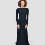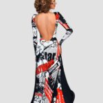 The front part is kept very simple in a knitwear black color. This unusual pattern makes the back part very chic. The back neckline makes your back more feminine and sexy. This dress has a bodysuit.