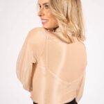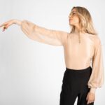 This outfit combines all what a lady wishes: elegance, comfort and style! In this blouse sleeves and bow are made from high quality thin chiffon. The front and back part are made of nude net fabric, which fit the body perfectly. It is easy to wear and gives you freedom during the dance.