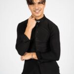 Slim fit shirt made of extremely stretchy fabric. Slim turn-down collar. Long sleeves with buttoned ends. Decorate your shirt with one of our brooches from the jewellery category.