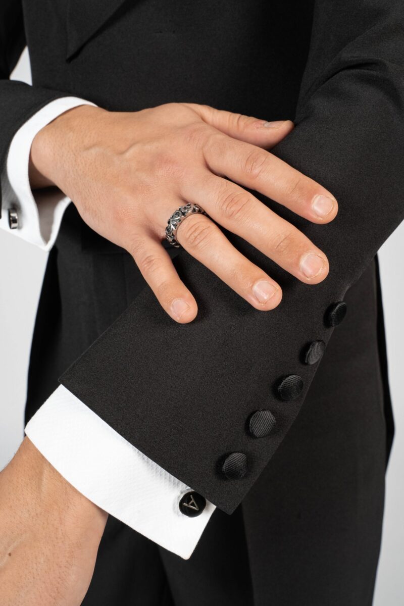 All our tail suits are made by your own measurements and we individualise them according to your wishes. After your order, we will send you the measurement table. In a free ZOOM call, phone call or email process, we will focus on your needs together with you and advise you. Our expertise enables us to tailor the tailcoat perfectly for you without trying it on before. If you wish to have a fitting and have the opportunity to visit us in our studio in Vilnius, Lithuania. Together with you we will create the perfect and modern tail suit for you. If you have any questions regarding the procedure or you wish to receive more information, please do not hesitate and contact us through Email or instagram.