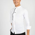 A modern white shirt with a face, which is made of high quality cord and blue Swarowski crystal (crystal color can be changed by client wish) . Pure precision work that is handmade. This product has a low collar that gives it a unusual look. It is a knitwear fabric, which is breathable, easy to care for, crease-free. You will be a real eye-catcher with this shirt.