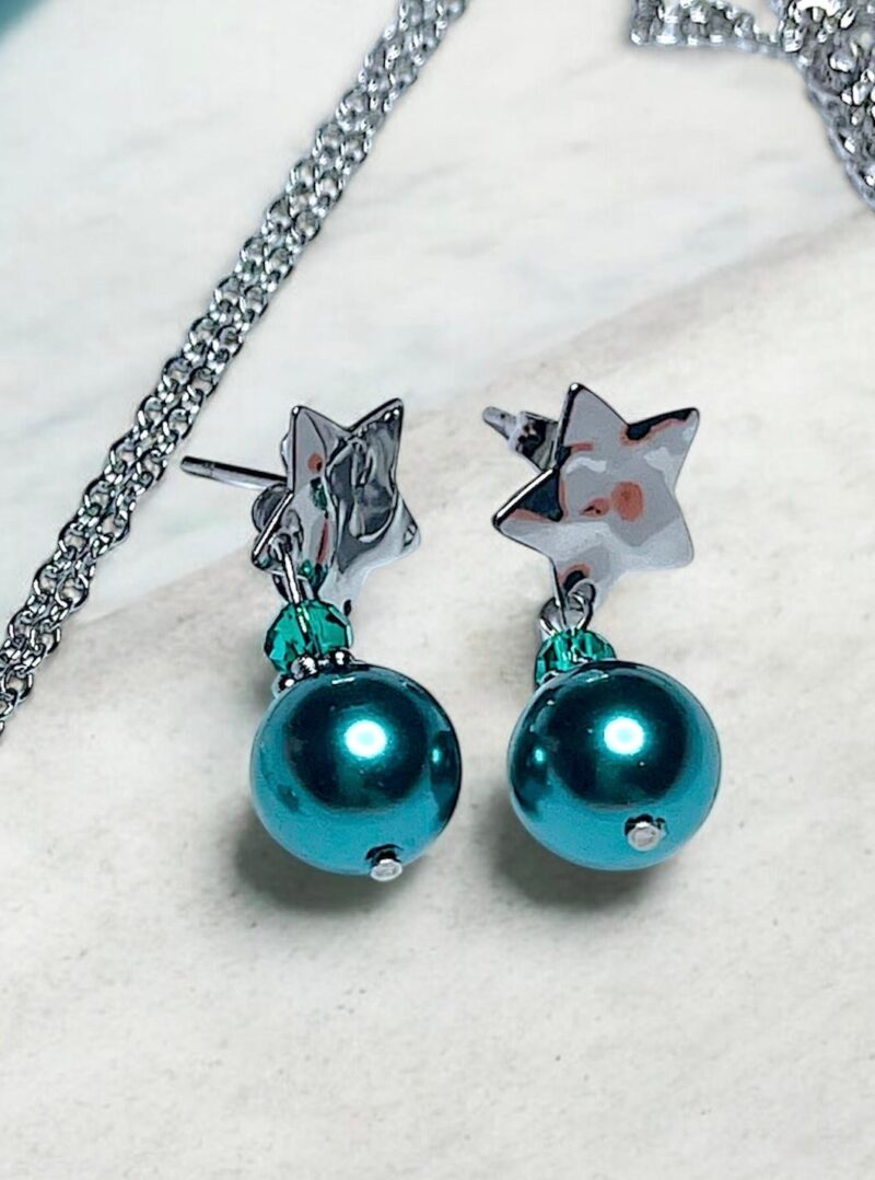 Diese zauberhaften Sternenohrringe vereinen zeitlose Eleganz mit einem Hauch von Magie. Feine Perlen aus Glas schimmern sanft im Licht und werden durch funkelnde Swarovski® Kristalle perfekt ergänzt. Die sternförmige Gestaltung verleiht dem Schmuckstück eine romantische und zugleich moderne Ausstrahlung.