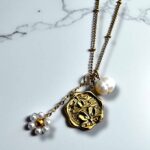 Es ist eine elegante Halskette aus hochwertigem Edelstahl mit einem filigranen Anhänger in Form einer weißen Blume. Als besonderes Highlight ziert eine echte Perle das Ensemble – für einen Hauch natürlicher Schönheit.