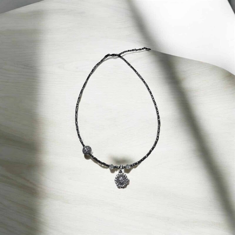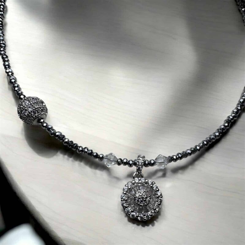 Diese Halskette kombiniert Eleganz und Glanz durch fein gearbeitete Elemente. Sie besteht aus hochwertigen Swarovski-Kristallen, einer detailreichen Zirkonia-Kugel, die funkelnde Akzente setzt, und glitzernden Glaskristallen, die das Design abrunden. Die filigran gestaltete Anhängerfassung bildet ein harmonisches Gesamtbild, perfekt für besondere Anlässe oder als edles Accessoire im Alltag.