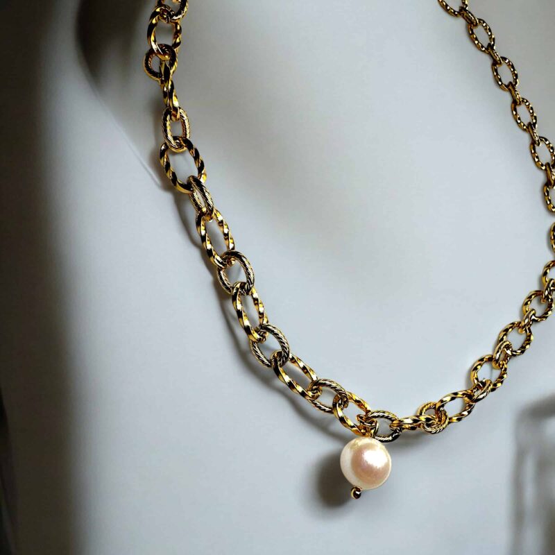 Diese edle Halskette ist mehr als nur ein Basic – sie ist ein Statement moderner Raffinesse. Mit einer klaren, schlichten Linie besticht sie durch Elemente in hochwertiger 3D-Struktur, die für das besondere Etwas sorgen und eine faszinierende Tiefe verleihen. Das Herzstück? Eine echte, makellose Perle, die als Anhänger sanft schwingt und subtilen Luxus ausstrahlt.