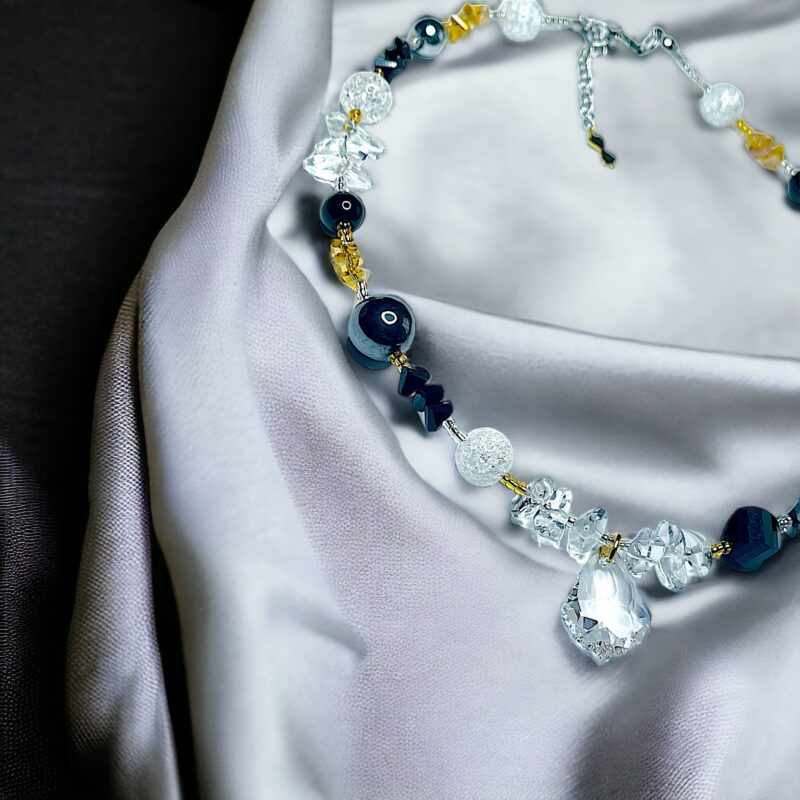 Swarovski Perlen & Kristalle in de schönsten Formen sind kombiniert mit kleineren Styklokristallen und goldenen Akzenten.