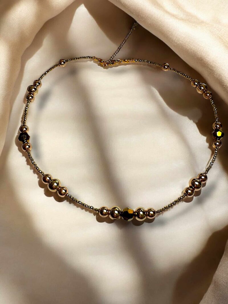 Wow-Effekt garantiert ✨ Diese luxuriöse Halskette im edlen Goldton ist ein absolutes Highlight für jedes Outfit. Strahlende Swarovski-Kristalle in verschiedenen Größen lassen sie in allen Facetten funkeln und verleihen ihr eine glamouröse Ausstrahlung, die sofort ins Auge fällt. Der warme Goldschimmer sorgt für zeitlose Eleganz, während die funkelnden Akzente einen Hauch von Extravaganz und High-Class-Luxury versprühen. Ein Schmuckstück, das nicht nur glänzt – es hinterlässt Eindruck.