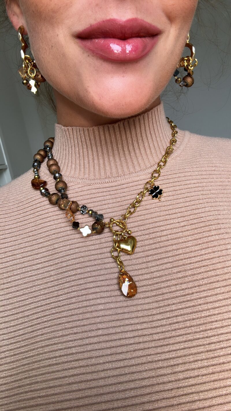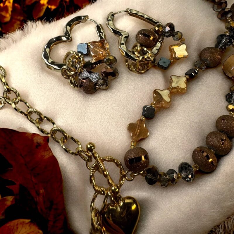 Diese einzigartigen Ohrringe sind das perfekte Herbst-Statement! Die Herzform, kombiniert mit der modernen 3D-Struktur und den runden Anhängern aus Glasperlen, verleiht ihnen eine verspielte und elegante Note. Die warmen Töne der Kristalle fangen das goldene Licht des Herbstes ein und funkeln bei jedem Schritt. Als besonderes Highlight haben wir ein Stück des Kettenmusters aus der Autumn Elegance Necklace integriert – ein harmonisches Zusammenspiel für ein komplettes, stilvolles Set.