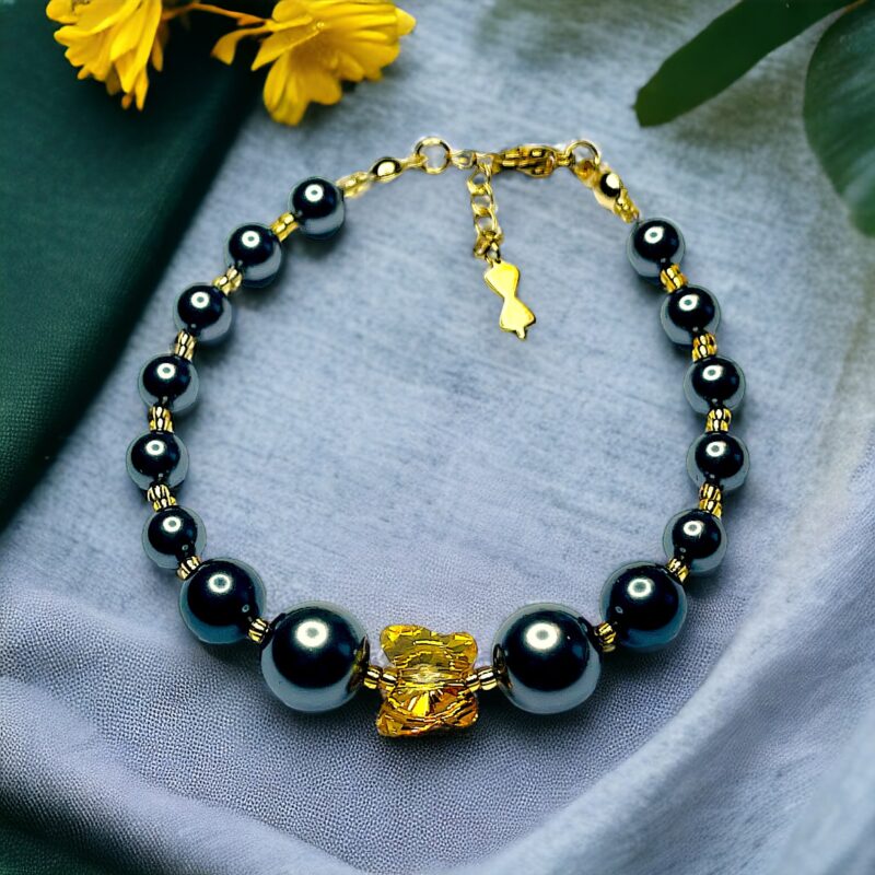 Ein elegantes Armband bestehend aus hochwertigsten Materialien. Die goldenen Akzente in Kombination mit den Swarovski Perlen strahlen eine pure Majestät aus.