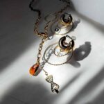Diese überlange goldene Kette verkörpert pure Eleganz und zeitlosen Luxus. Im Zentrum steht ein großer, facettierter Swarovski-Kristall in einem tiefen, glänzenden Braunton – ein Statement voller Wärme und Raffinesse.