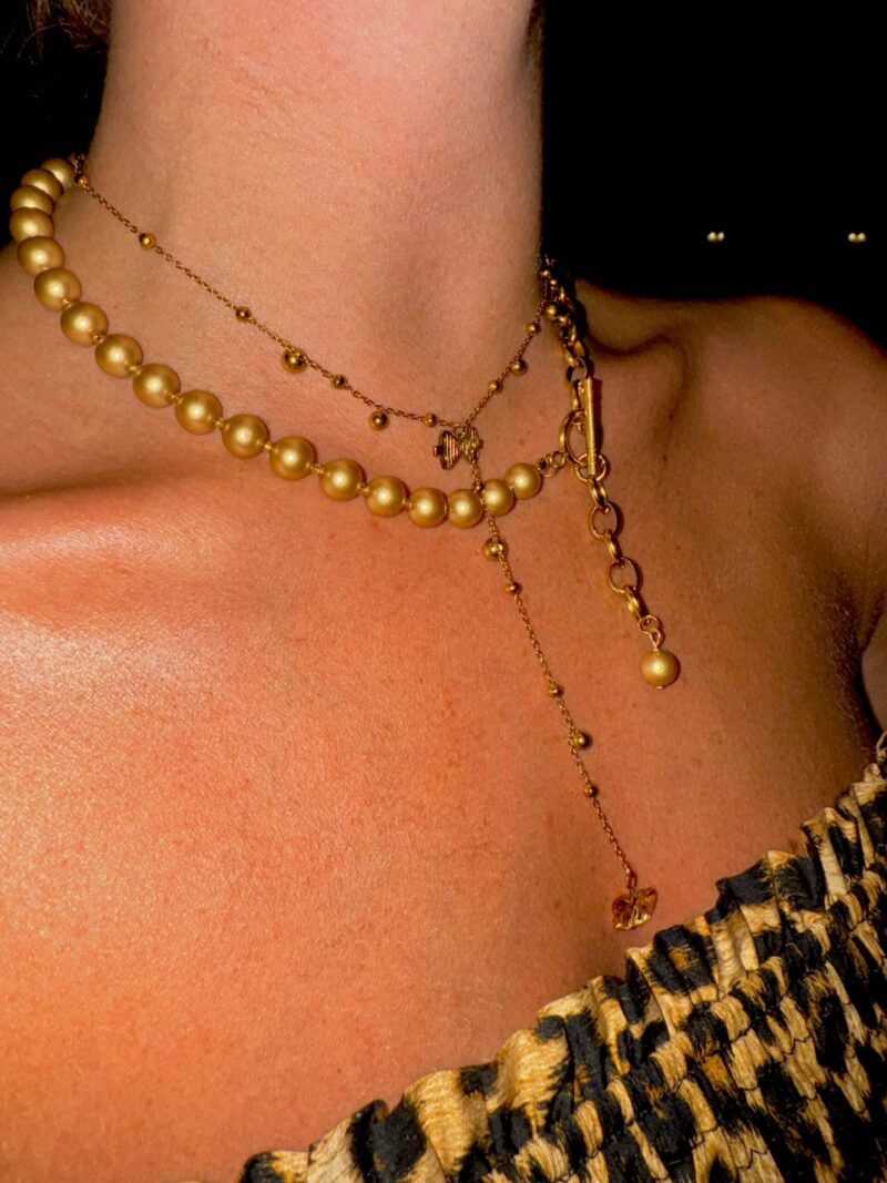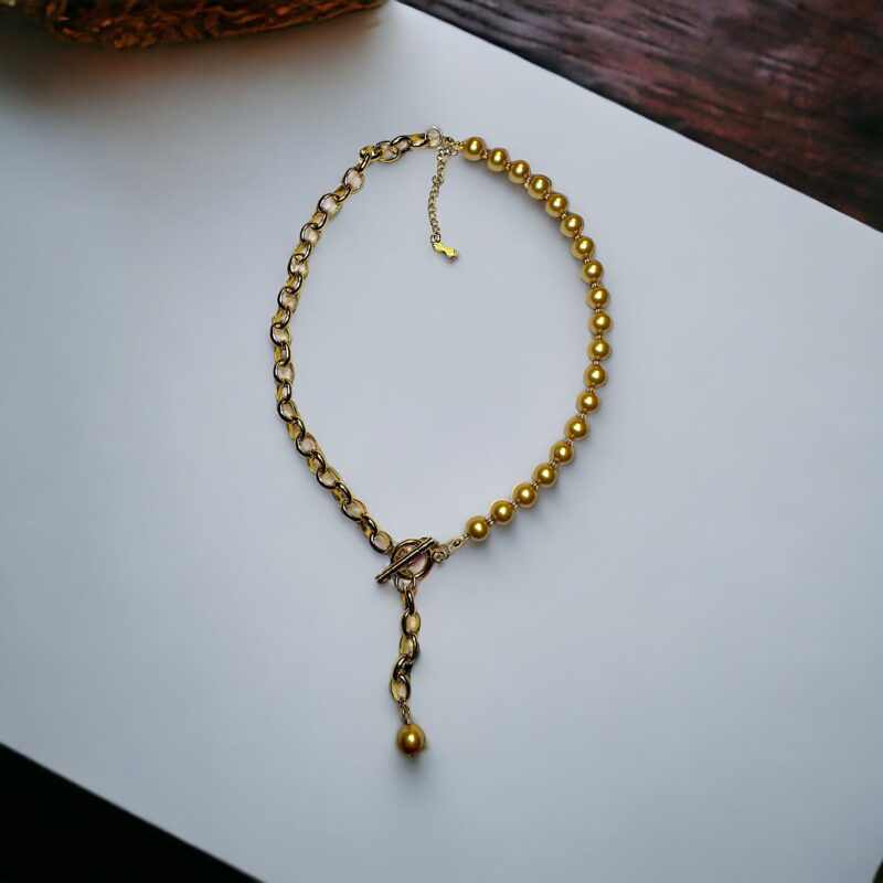 Swarovski Perlen gold & Edelstahl Kette.Klassiker mit einem Fashion Touch.