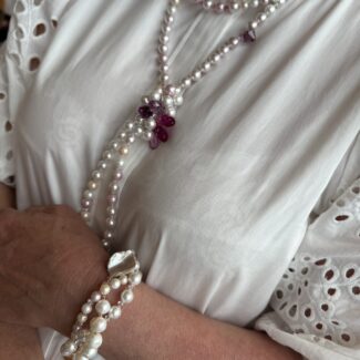 Materialien: Swarovski Kristalle, Muschelperlen, Edelstahl