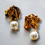 Diese wunderschönen Designer-Ohrringe vereinen die natürliche Schönheit von Muschelperlen mit dem funkelnden Glanz von Swarovski-Kristallen. Goldene Akzente verleihen dem Schmuckstück eine luxuriöse Note und unterstreichen seine zeitlose Eleganz.