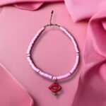 Der Hingucker ist ein Anhänger mit sinnlichen, vollen Lippen, verziert mit funkelnden Swarovski-Kristallen, die für das gewisse Glitzern sorgen.