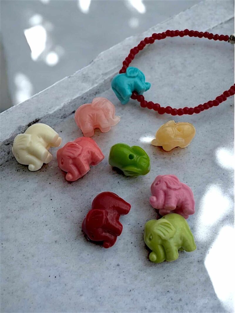 🐘 Highlight: In der Mitte sitzt ein Elefanten-Anhänger, erhältlich in verschiedenen Farben – jedes Stück ein kleines Unikat!