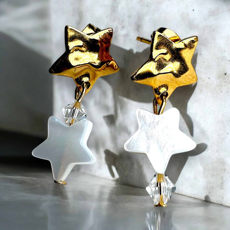 Dank ihres leichten Designs sind die Ohrringe besonders angenehm zu tragen – ideal für den täglichen Gebrauch, aber auch perfekt, um jedem Outfit einen besonderen Touch zu verleihen. Sie passen zu nahezu jedem Look, sei es zu einem casual Outfit oder auch zu etwas Schickeren – die Sterneohrringe setzen immer einen stilvollen Akzent. Ihre Kombination aus Gold und Weiß sorgt für eine zeitlose Eleganz, die sich wunderbar in jede Garderobe einfügt.