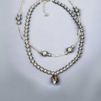 Diese elegante Halskette vereint graue, geometrische Glaskristalle mit schwarzen, glänzenden Glasperlen zu einer stilvollen Unisex-Kombination. Der raffinierte Mix aus klaren Linien und schimmernden Details verleiht jedem Outfit einen Hauch von Glamour. Ob casual oder elegant, diese Kette ist vielseitig kombinierbar und sorgt für einen dezenten, aber edlen Glanz. Ein Accessoire, das zeitlose Eleganz mit modernem Design verbindet.