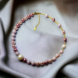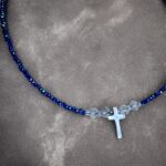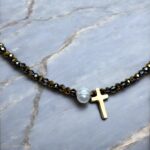 Diese filigrane Halskette besticht durch ihre zarte Eleganz und funkelnden Details. Sie ist mit schimmernden Glaskristallen sowie hochwertigen Swarovski-Kristallen verziert, die in der Sonne einen sanften, irisierenden Glanz entfalten. Das zentrale Element der Kette ist ein goldenes Kreuz, das zeitlose Symbolik und schlichte Raffinesse miteinander verbindet. Die kleinen, perlenartigen Kristalle verleihen der Kette ein luftig-leichtes und zugleich stilvolles Design, das ideal zu besonderen Anlässen oder für den Alltag passt.