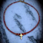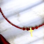 Das Zusammenspiel von Gold, kristallklarem Funkeln und minimalistischer Ästhetik macht diese Halskette zu einem dezenten, aber aussagekräftigen Accessoire, das Eleganz und Spiritualität harmonisch vereint.
