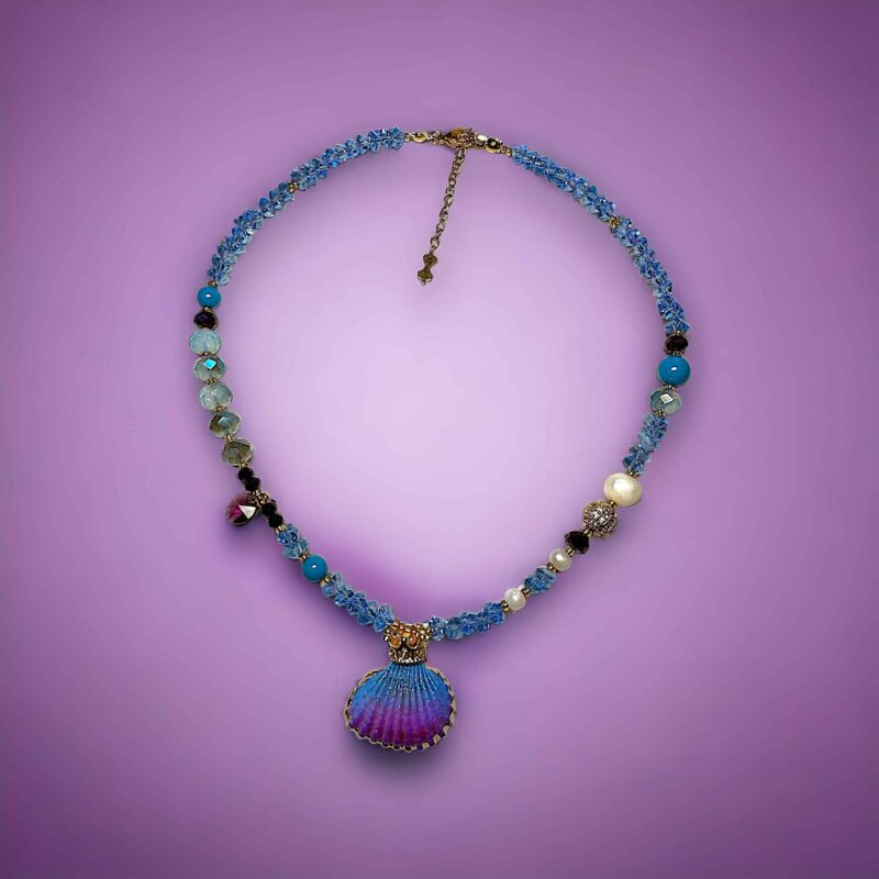 Unsere einzigartige Halskette vereint die natürliche Schönheit einer Muschel mit elegantem Design, um Dir einen unvergleichlichen Look zu verleihen, der Dich sowohl am Strand als auch am Abend strahlen lässt. Mit ihrer vielseitigen Eleganz ist diese Kette das perfekte Accessoire für jeden Anlass, das Dein Stil mühelos von Tag zu Nacht begleitet.