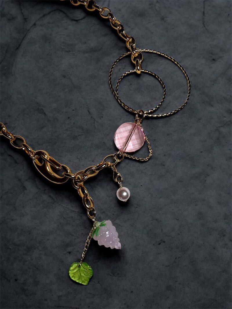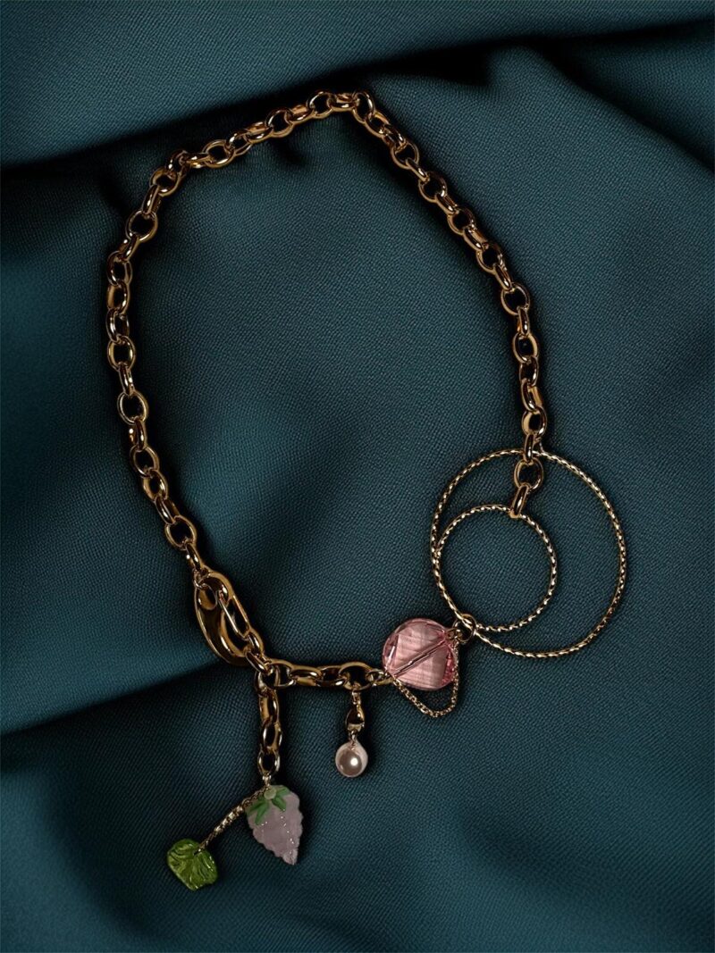 Als zusätzliche Anhänger setzen Himbeer- und zartrosafarbene Akzente feminine Highlights und unterstreichen die besondere Farbwelt dieser Kreation.