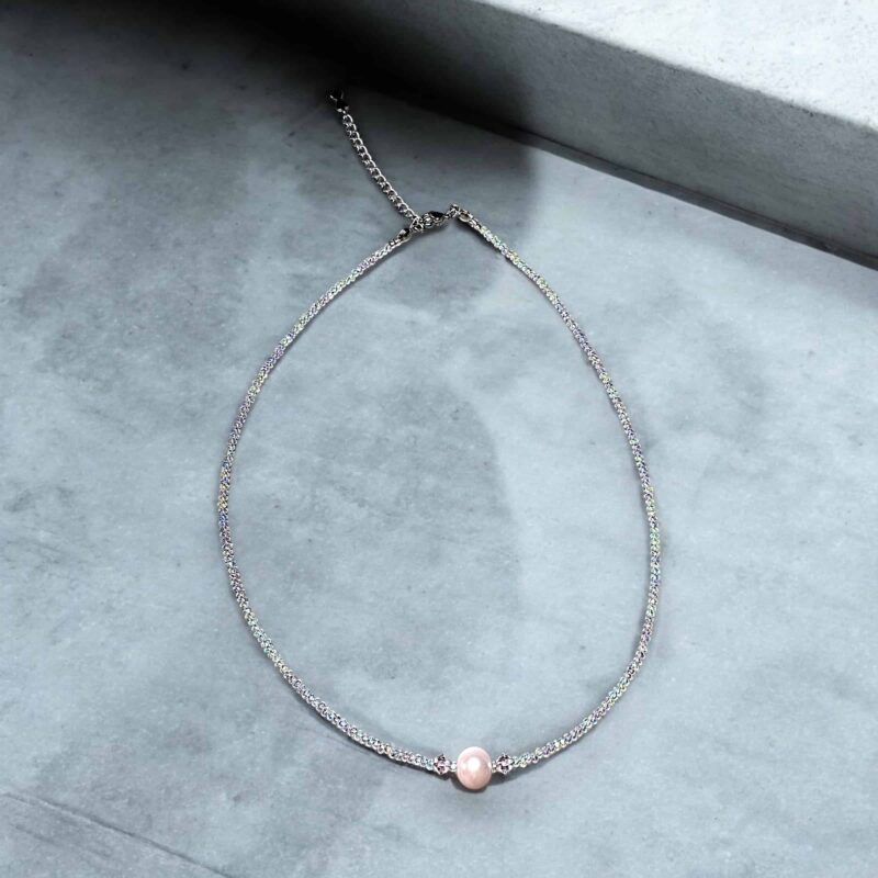 Diese zarte Kette vereint filigrane Styklokristalle, die in sanften, funkelnden Glanztönen aneinandergereiht sind, und eine bezaubernde Babyrosa Muschelperle, die das Schmuckstück mit einer dezenten, doch eleganten Farbnuance veredelt. Die feinen Kristalle verleihen dem Design einen Hauch von Magie, während die Muschelperle in ihrem sanften Rosa einen Hauch von Feminität und Frische ausstrahlt. Die Kombination aus diesen edlen Materialien macht “Rosé Lumen” zu einem außergewöhnlichen Accessoire, das sowohl im Alltag als auch zu besonderen Anlässen eine zeitlose Eleganz und einen einzigartigen Charme versprüht. Ein wahrer Blickfang für alle, die das Besondere lieben.