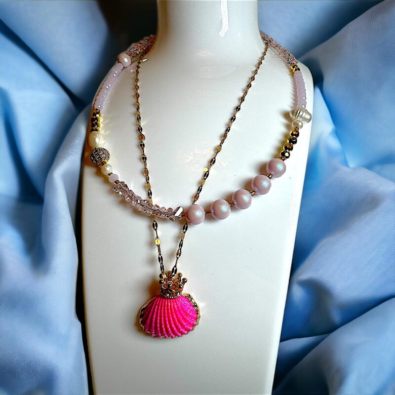Meine Kollektion kombiniert die natürliche Eleganz von Muscheln mit dem zeitlosen Charme von Perlen, ergänzt durch ein Spektrum leuchtender Farben, die die lebhafte Energie des Sommers widerspiegeln.