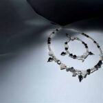 Materialien: Muschelperlen, Swarovski Kristalle, Edelstahl