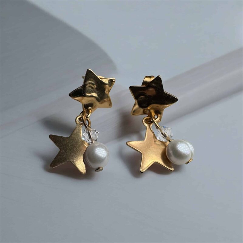 Elegante Stern-Ohrringe in Gold und Silber, verziert mit funkelnden Swarovski-Kristallen und echten Perlen. Das perfekte Zusammenspiel aus zeitlosem Glanz und moderner Eleganz – ein Hingucker für jeden Anlass.