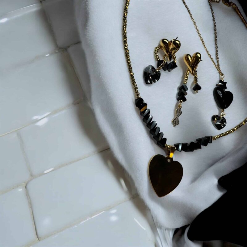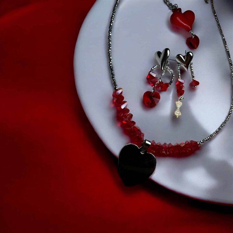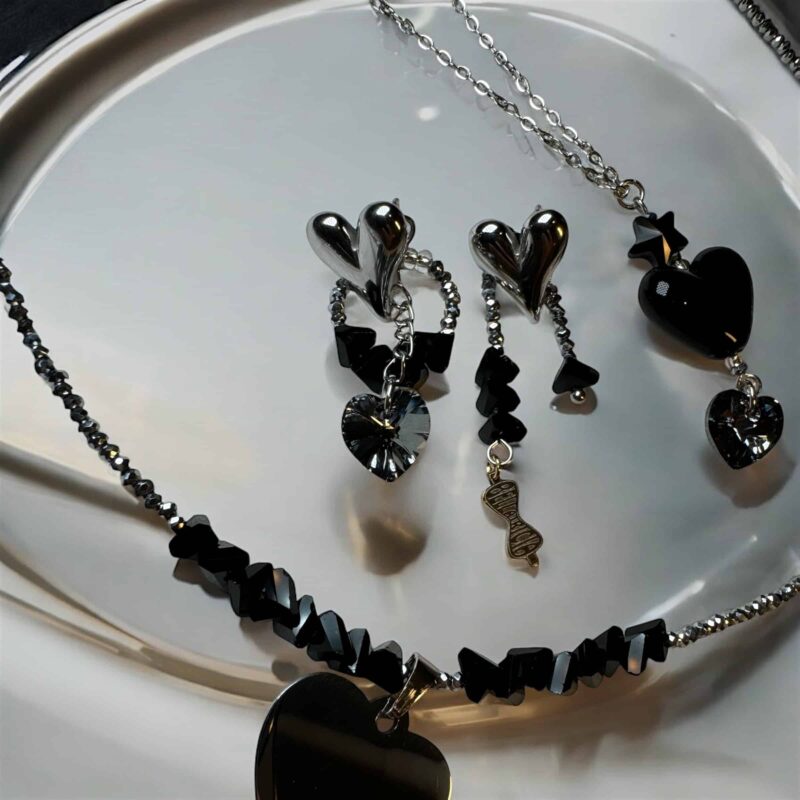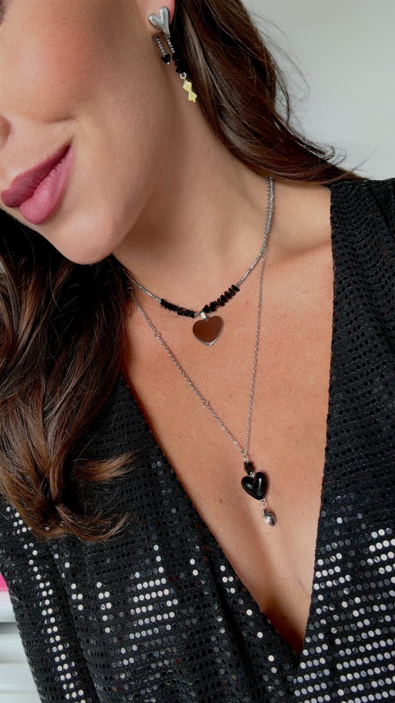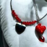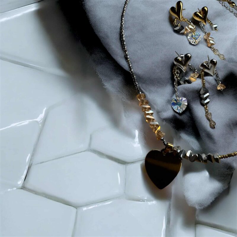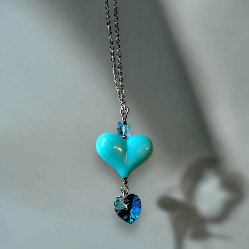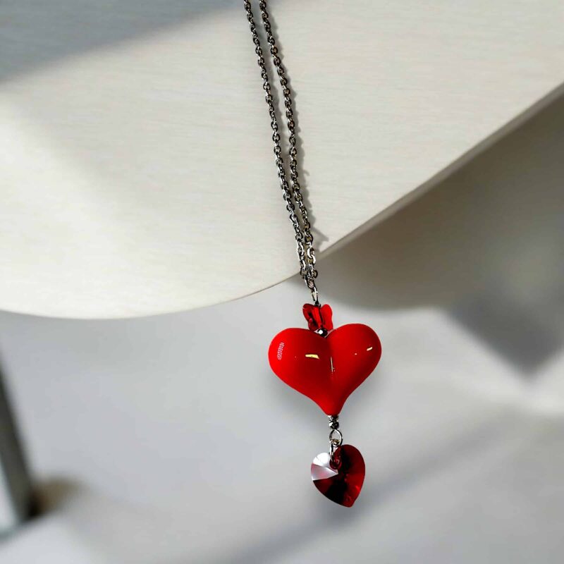 Die Kette ist in verschiedenen Farbvariationen erhältlich, sodass du deine Lieblingsfarben mühelos miteinander kombinieren kannst. Perfekt dazu passen die Ohrringe aus der gleichen Kollektion, oder die längere Version der Kette mit einem auffälligen Herzanhänger aus Acryl und zwei zusätzlichen Swarovski-Kristallen, die jedes Outfit abrunden.
