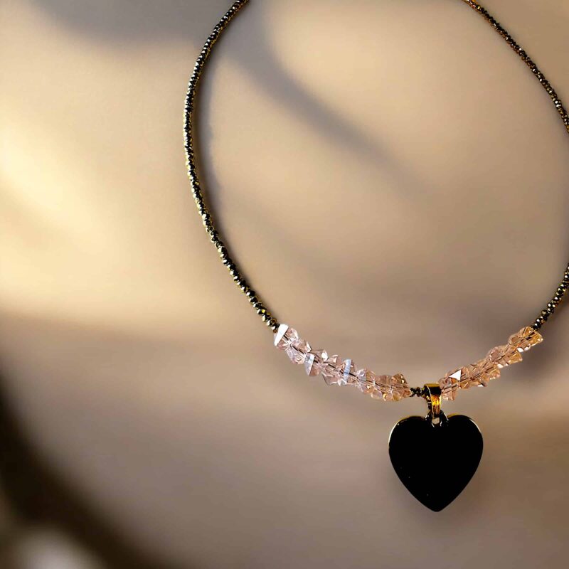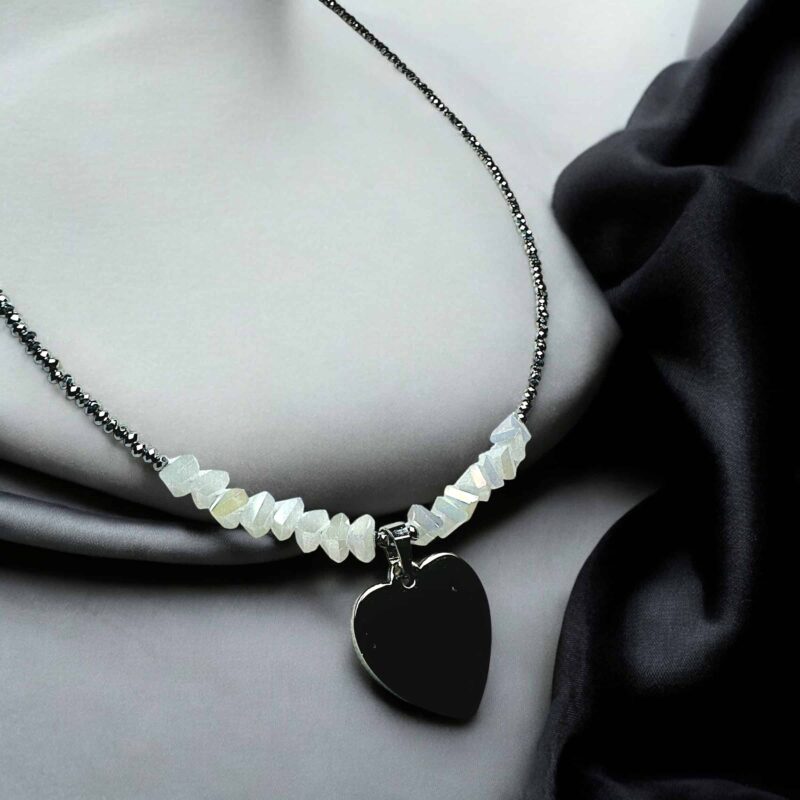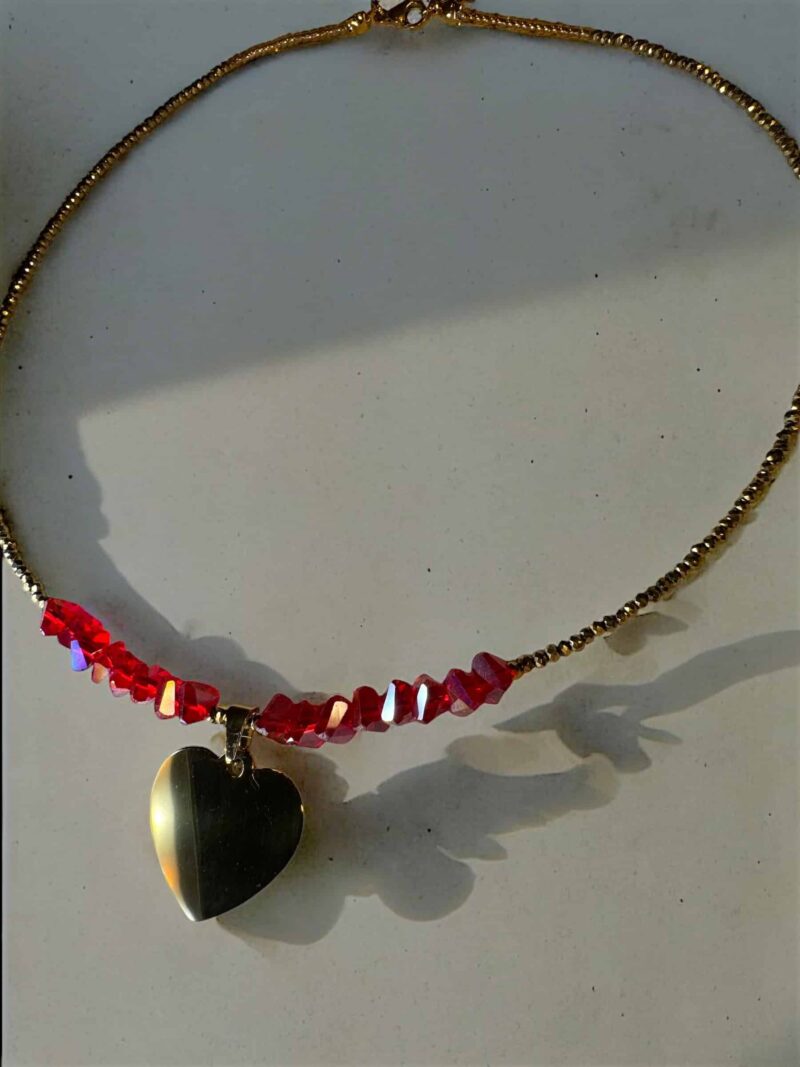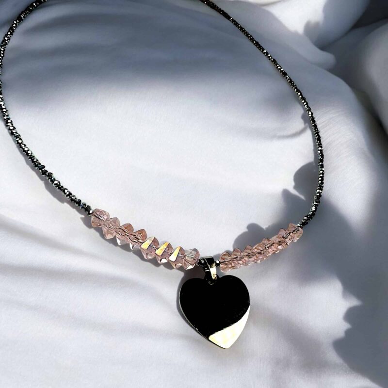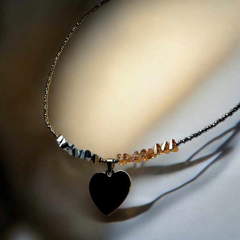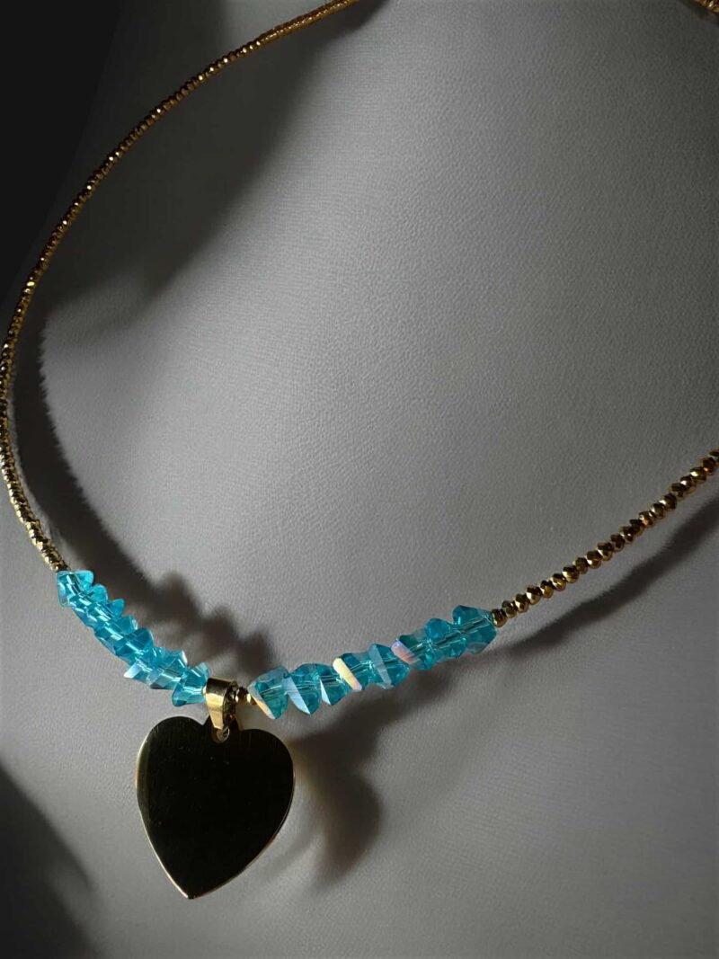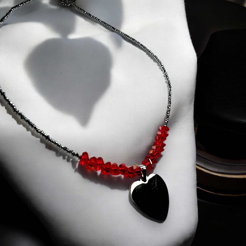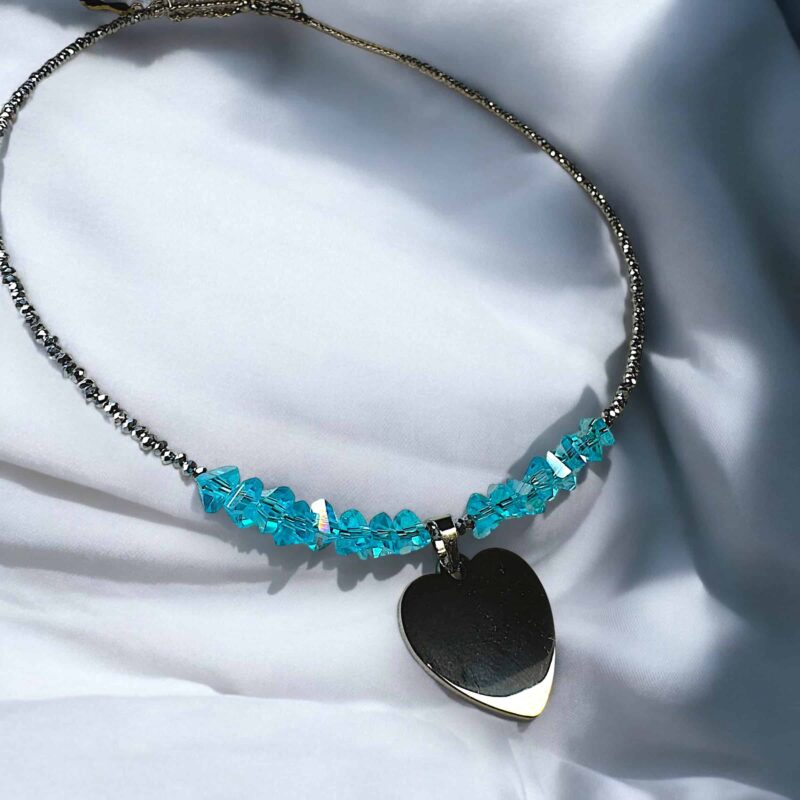 Die Kette ist in verschiedenen Farbvariationen erhältlich, sodass du deine Lieblingsfarben mühelos miteinander kombinieren kannst. Perfekt dazu passen die Ohrringe aus der gleichen Kollektion, oder die längere Version der Kette mit einem auffälligen Herzanhänger aus Acryl und zwei zusätzlichen Swarovski-Kristallen, die jedes Outfit abrunden.