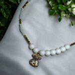 Erlebe die faszinierende Schönheit der Teddy Luxe Halskette, ein atemberaubendes Schmuckstück aus einer harmonischen Mischung von Glasperlen. Die weißen Perlen variieren zwischen matt und glänzend, während die schwarzen Perlen durch ihren durchgehenden Glanz bestechen. Diese exquisite Kombination wird durch funkelnde runde Styklo Kristalle in Gold und Weiß ergänzt, die für zusätzlichen Glanz sorgen.