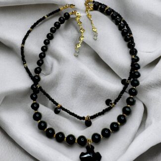The turquoise-pink teddy set with a gold crown and preciosa bohemian crystals is the best way to show your style. This set gives your outfit a beautiful style with a touch of coolness.
